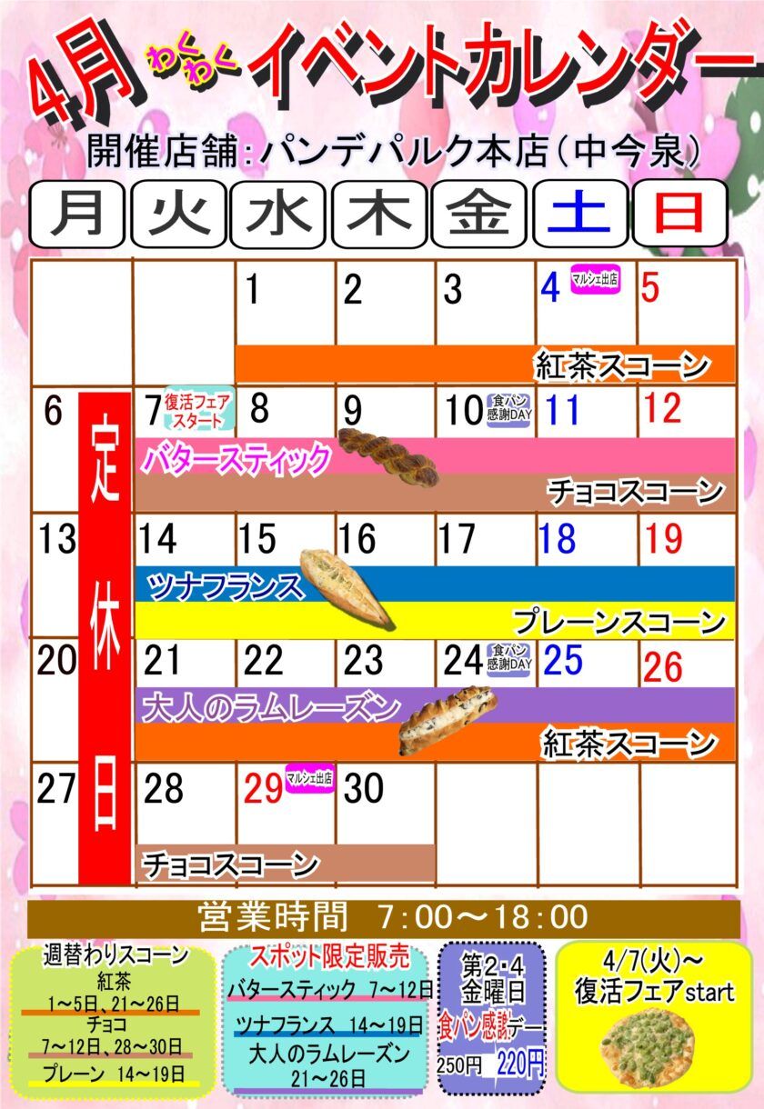ホーム » お知らせ » 4月イベントカレンダー