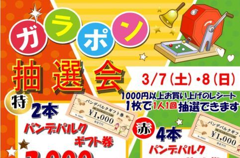 2日間限定でハズレなしの大抽選会を開催! 1,000円以上お買い上げのレシート1枚で1回抽選できます 同日7時~15時限定でスーパーボールや消しゴムくじなどキッズ縁日も開催☆