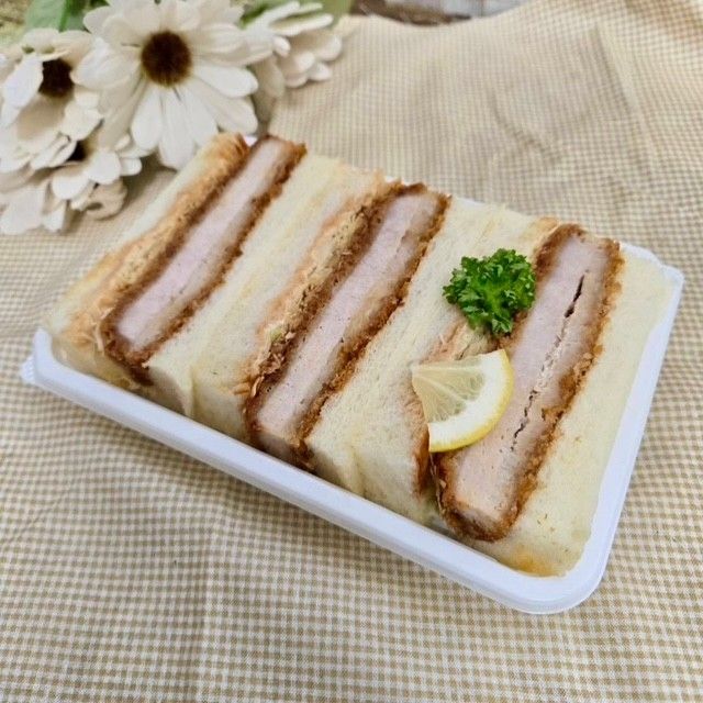 山瑚泉仕込みの(沖縄の地下浸透海水)とんカツに、こだわり特製ソースをたっぷりつけてキャベツと一緒にサンドしました。