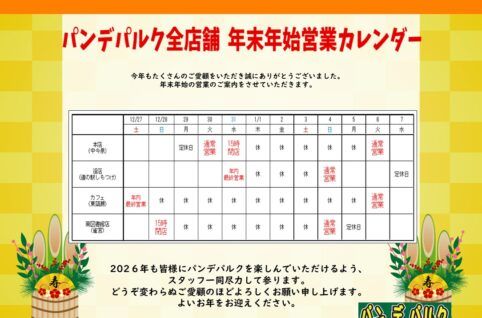 全店年末年始の営業予定
